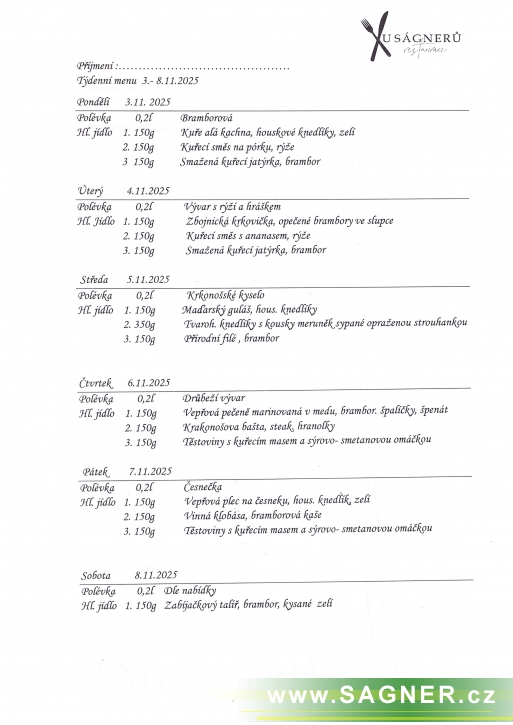 Týdenní menu rozvoz je pro stálé měsíční odběratele, kterým rozvážíme jídla do firem a domů. Informace na tel. 602164577